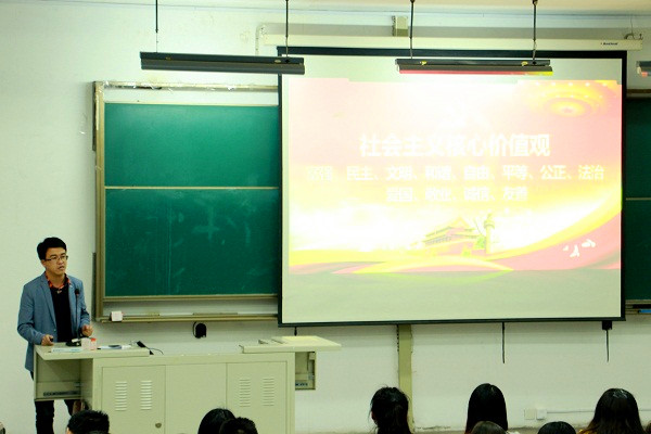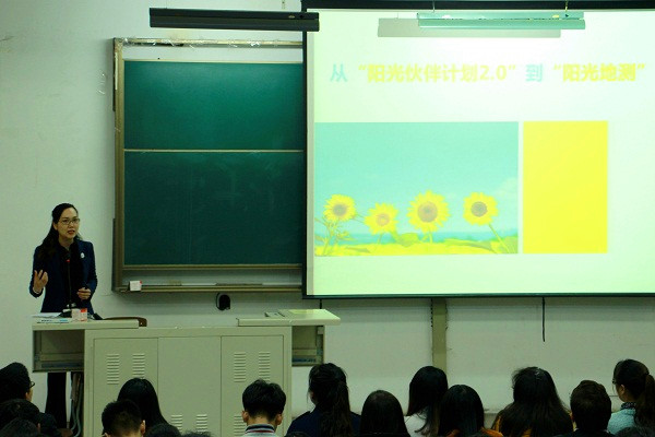 范珊珊老师介绍了“阳光伙伴”计划的起源、发展、特色、成绩及存在问题,着重就新升级的“阳光伙伴”计划2.0进行了实施方案的解释说明;袁大伟老师向同学们宣讲了“阳光伙伴特别策划之社会主义核心价值观深度体验”系列主题活动。