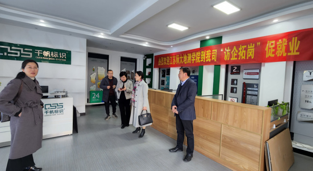 近日,地理测绘与城乡规划党委书记尹燕萍、院长欧向军、省文旅专家教授史春云、城乡规划系主任黄荣荣等一行,到千帆标识公司开展“访企拓岗”促就业活动。